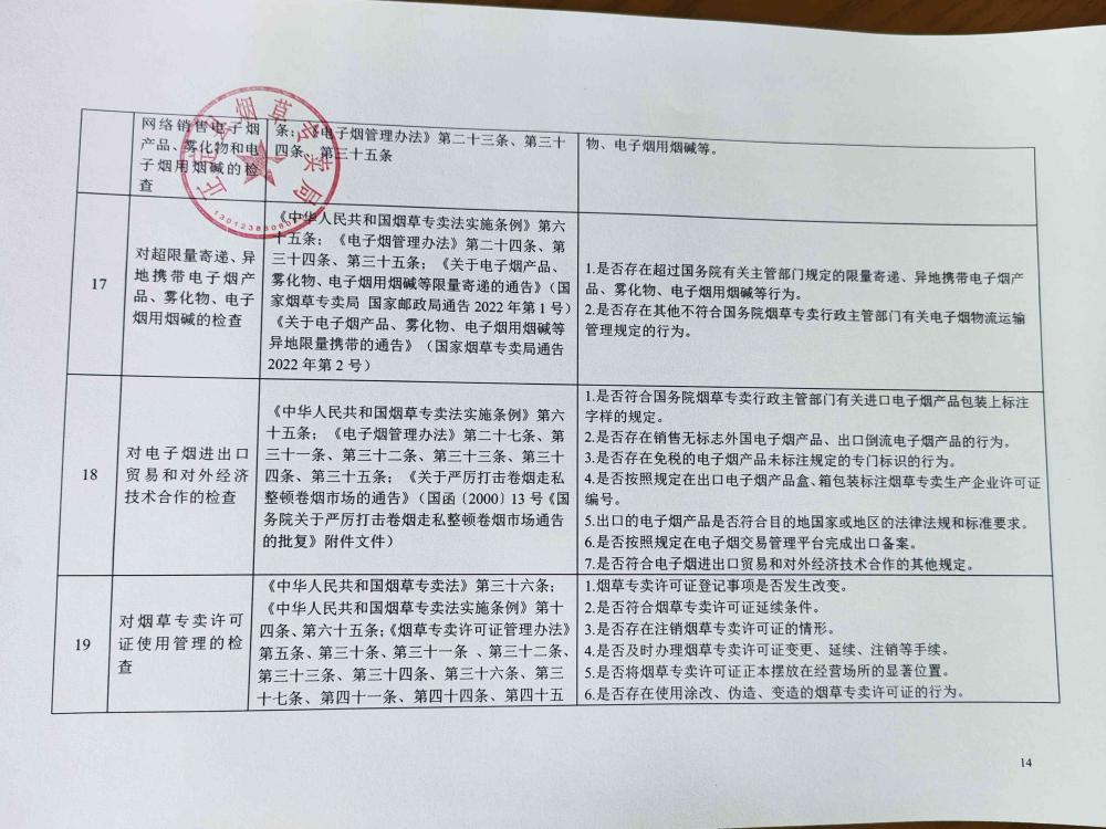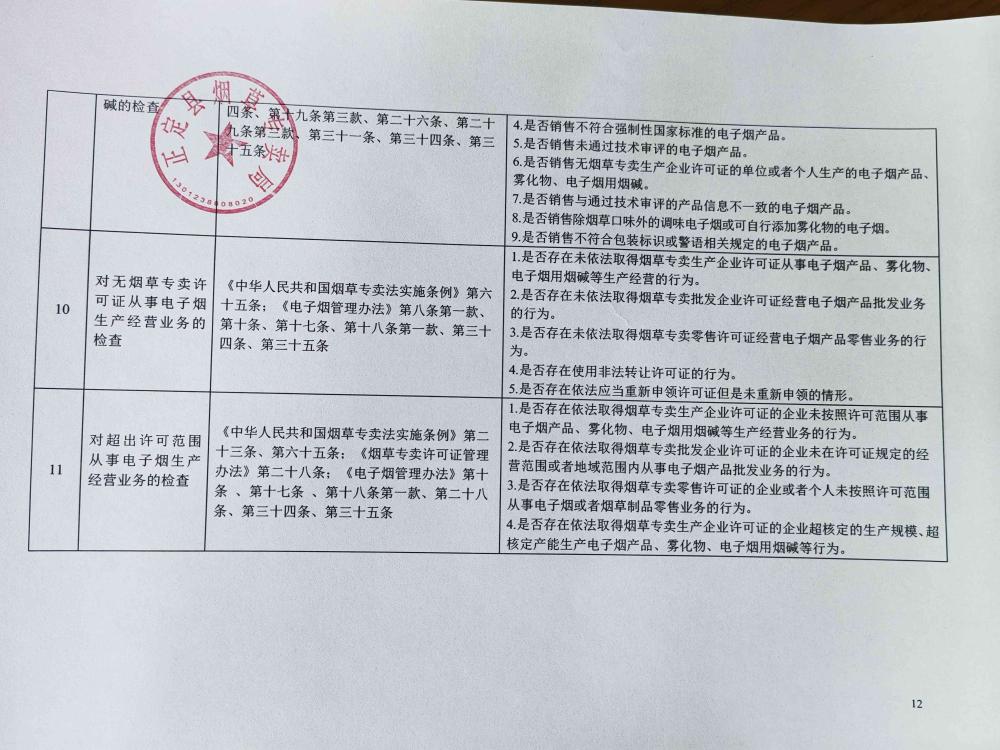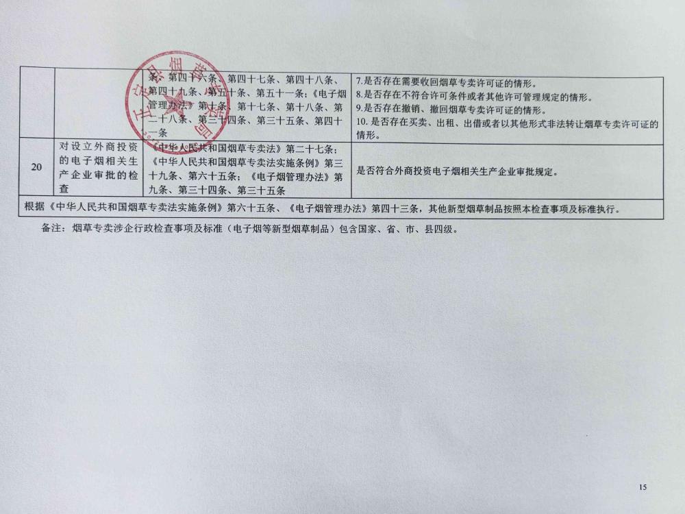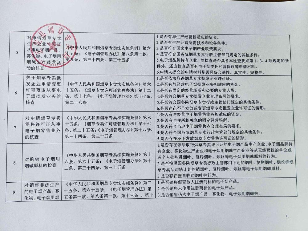 正定县烟草专卖局关于烟草专卖涉企行政检查事项及标准(电子烟等新型烟草制品)的公示