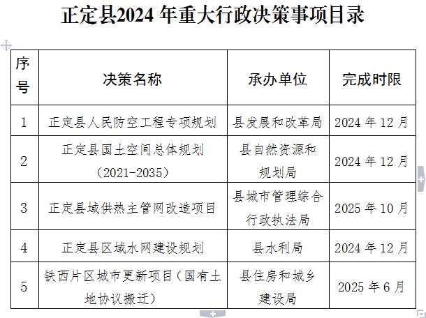 附件:正定县2024年重大行政决策事项目录