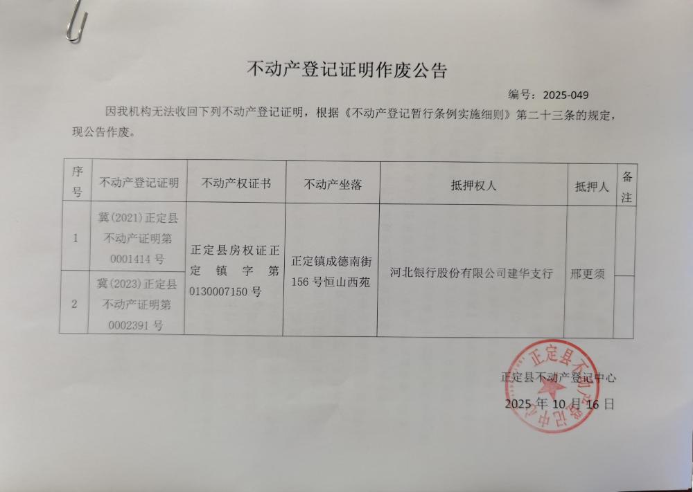 邢更须不动产登记证明作废公告