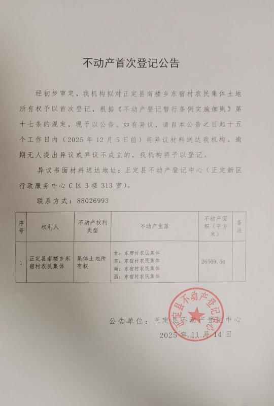 南楼乡东宿村农民集体土地所有权不动产首次登记