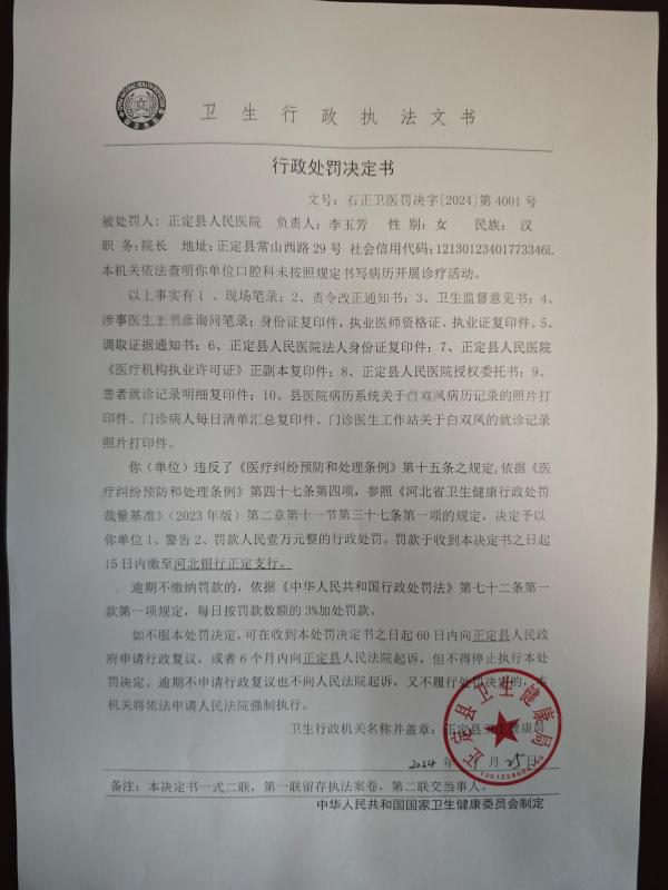 正定县人民医院未按规定书写病历案