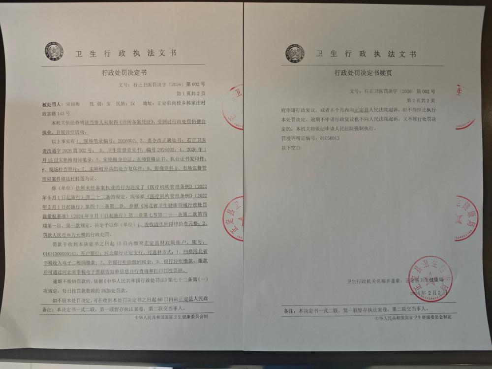 宋艳梅未取得《诊所备案凭证》擅自开展诊疗活动案