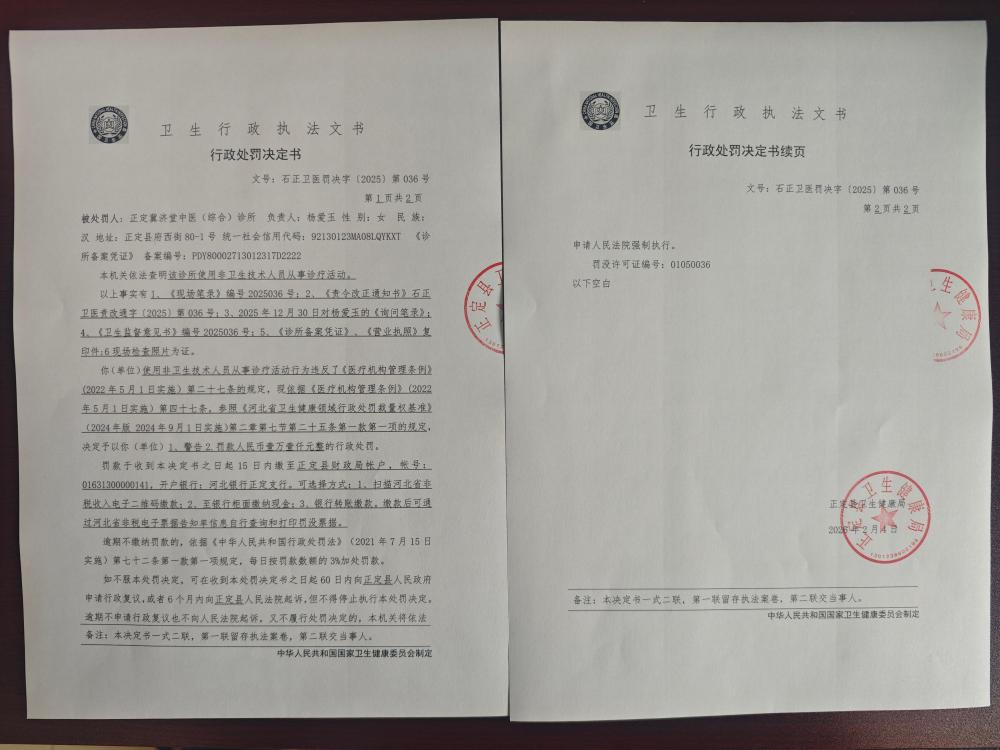 正定冀济堂中医(综合)诊所使用非卫生技术人员从事诊疗活动案