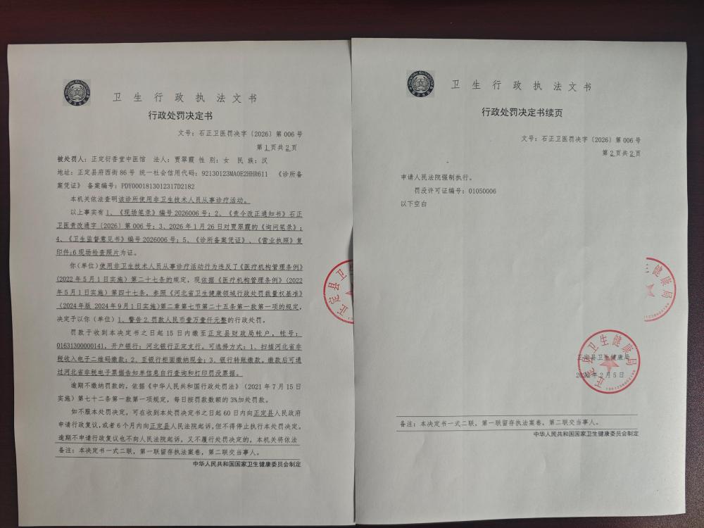 正定衍香堂中医馆使用非卫生技术人员从事诊疗活动案