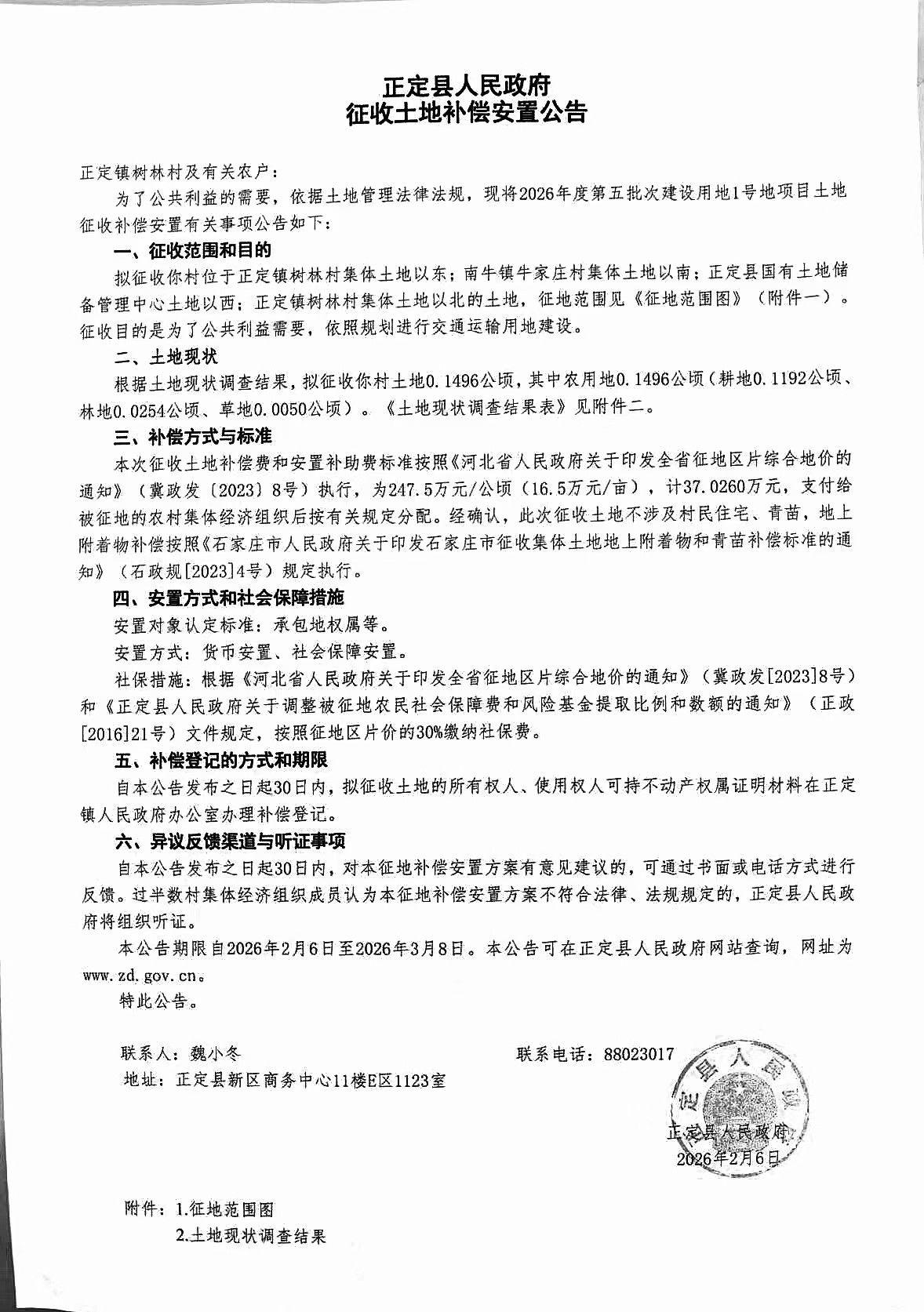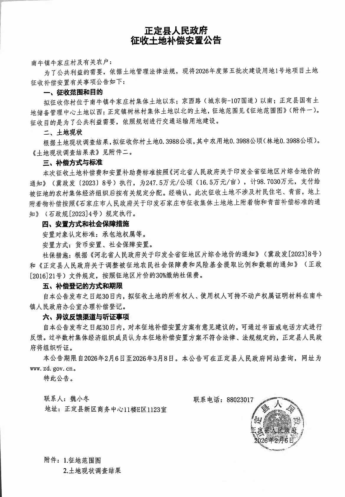 正定县人民政府关于正定县2026年度第五批次建设用地征收土地补偿安置方案公告