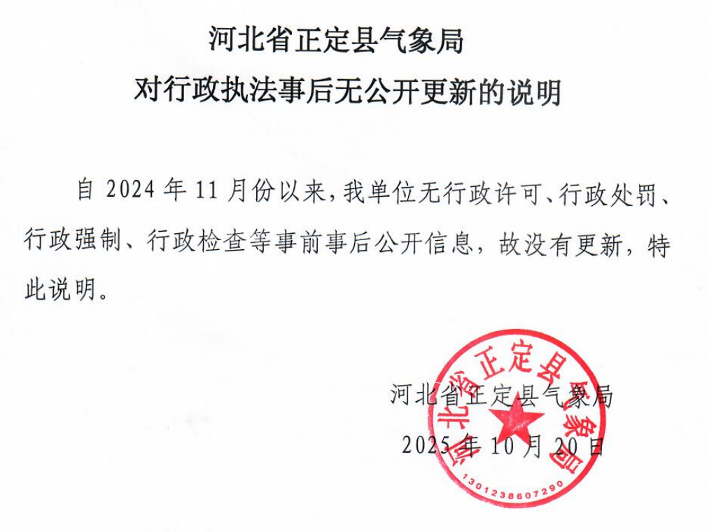 河北省正定县气象局对行政执法事后无公开更新的说明