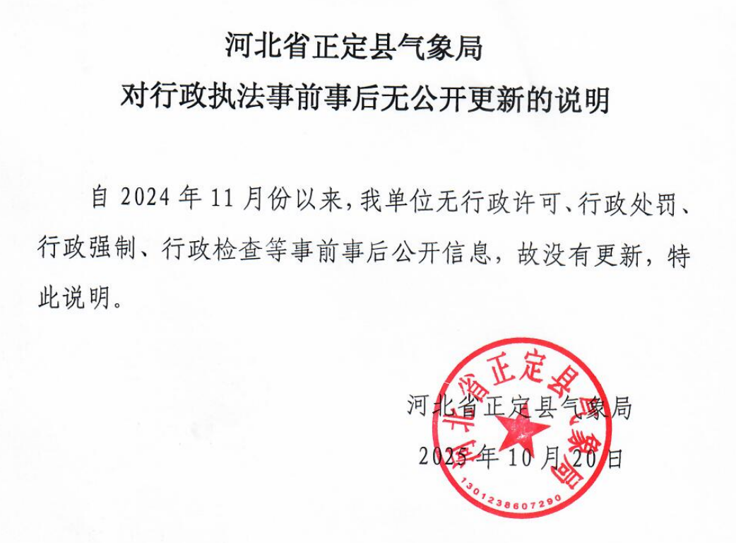 河北省正定县气象局对行政执法事前无公开更新的说明