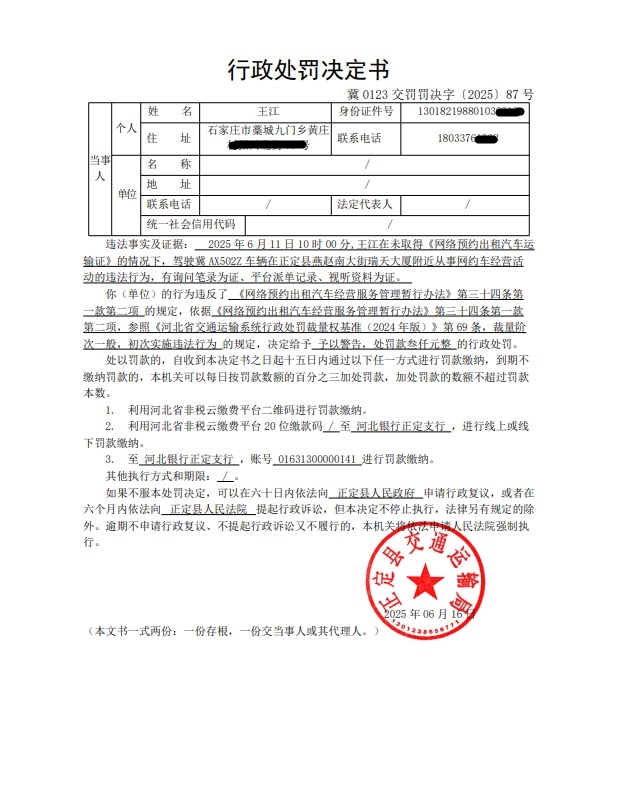 王江驾驶冀AX502Z未取得《网络预约出租汽车运输证》擅自从事网约车经营活动的案