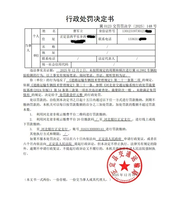 曹军立未按照规定的周期和频次进行车辆检验检测的案