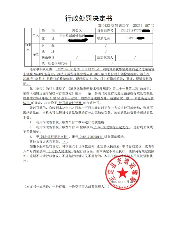 冯会义未按照规定的周期和频次进行车辆检验检测的案